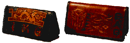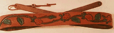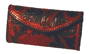 The possibilities offered to a leatherworker are almost endless. Here is a very small listing of the many kinds of item I make with leather. Of course, this is only a small fraction of the thousands of things that can be made with leather, from the smallest coin purse, to the biggest leather jacket or Saddle. The items listed here are the kind usually made with tooling leather, but there are so many different kinds of things that can be made with so many different kinds of leather, that I could not presume to even begin trying to list them all. If you are learning about leather items in general, be sure to go to Leather Links on the IILG page and visit some of the other many web pages devoted to leather craft.