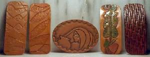 hese hair barrettes have a spring clip on the back and are carved from heavy leather. As well as the styles shown here, there is an endless variety of possibilities.
