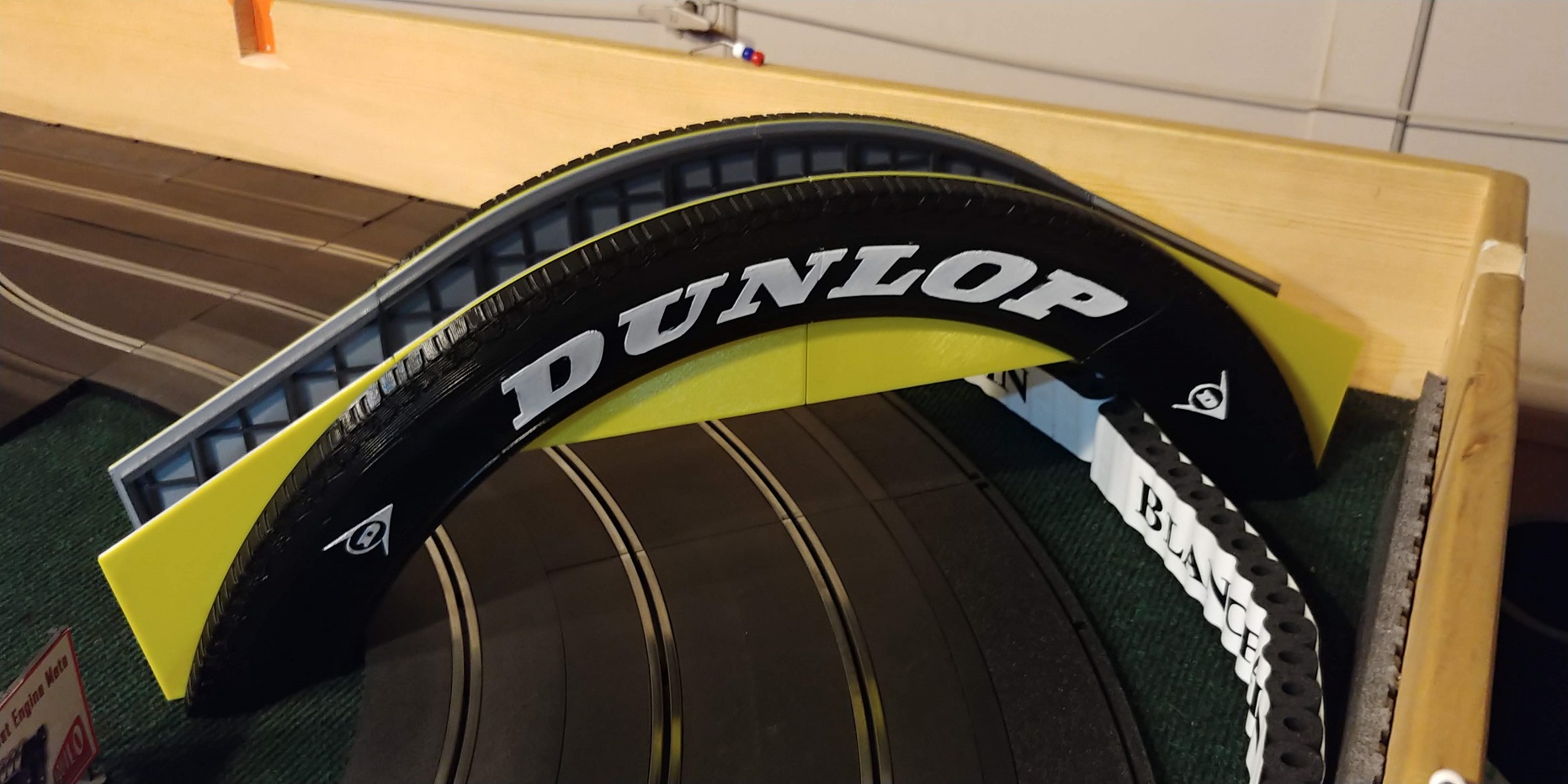 There is a very wide variety of models designed for slot car racing, from buildings to scenery to car bodies and chassis. Take a look at some of the things I've made for myself and other people. If you're looking for something in particular that you don't see on this page, just contact me. I might be able to find it, or design it. To the left you'll see A Dunlop bridge and lap tower, a Shell tower, pit lane garage facade, traffic cones, and more! Many of these come as simple model kits that you can easily assemble, or as ready to use completed prints. The PLA they are printed with can be painted, and they all pass the five foot rule. Some additional finishing work may be necessary if you plan to take close-up pictures, since the layer lines will be visible close up.