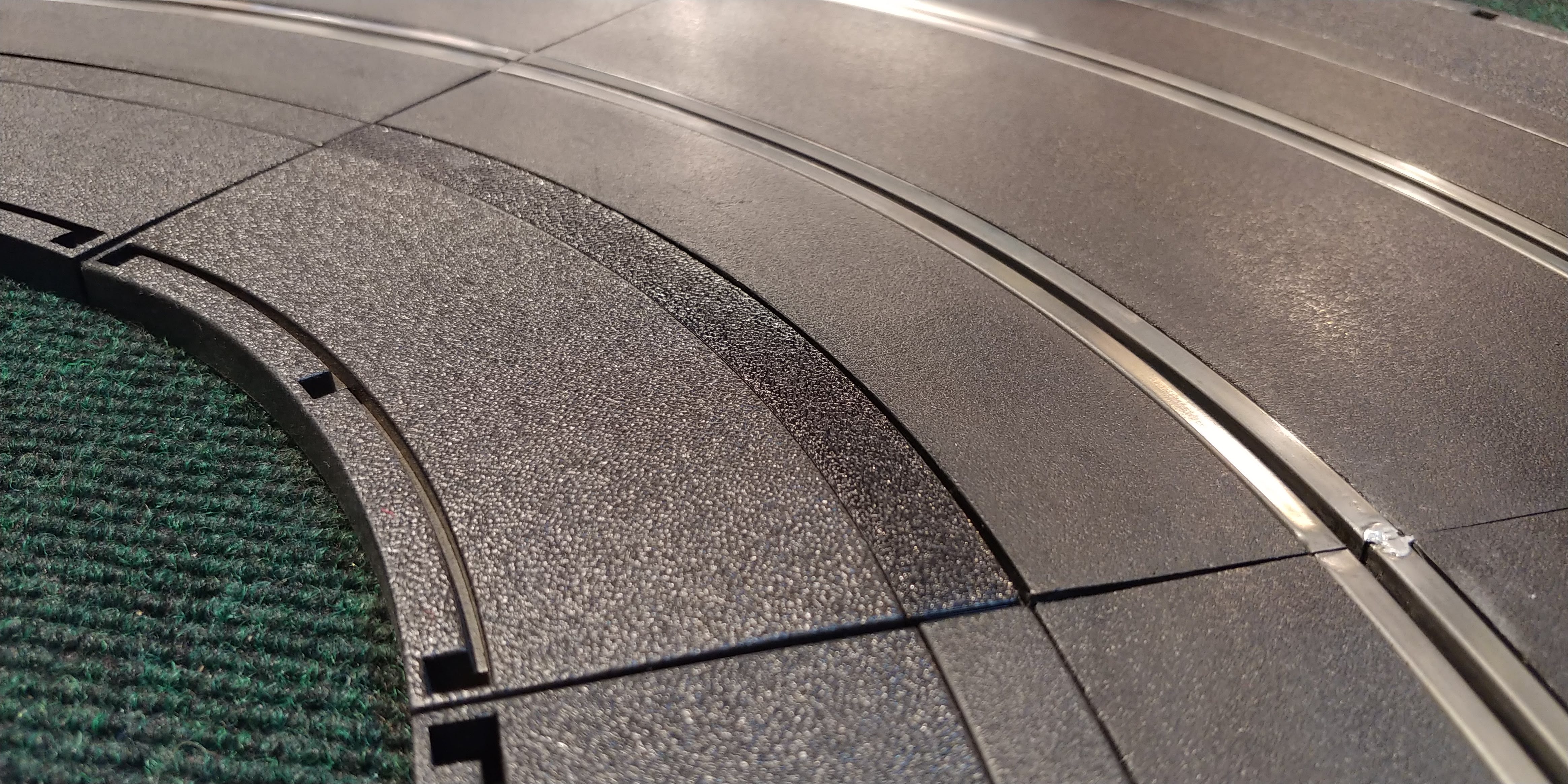 Did you miss out on the black borders for your Scalextric Classic or Sport track that had the flat kerbs (curbs)? Were you not able to procure enough of them for your layout? Or, do you need a flat kerb that Scalextric never even produced? If you still have the bump kerbs with the red and white stripes, and are tired of your performance cars getting upset by the transition over that bump, then fret no more! Just buy some of these and put them in place of the bump curbs (kerbs).