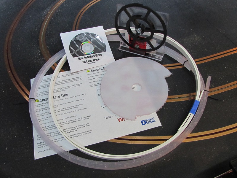 I am the current maker and exclusive retailer of the world renowned Wood Track Routing Guide and accompanying tools and video by OldSlotRacer. Products currently include the flexible routing strip, routing guide, router base plate, taping tool, and how-to DVD. You can get the Master Kit that discounts the overall cost, or choose specific items ala carte. When you know what you want, contact me by email at ggaub@ggaub.com with your address and what you want to order, and I'll respond with a total cost including shipping and how to pay.