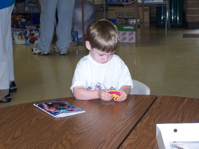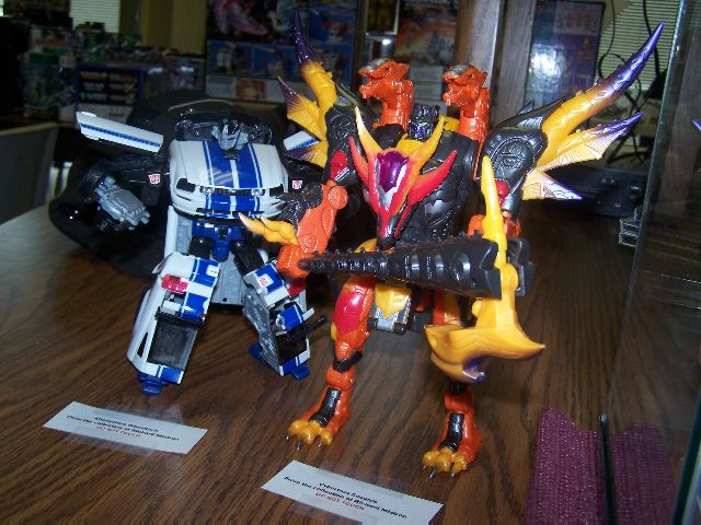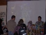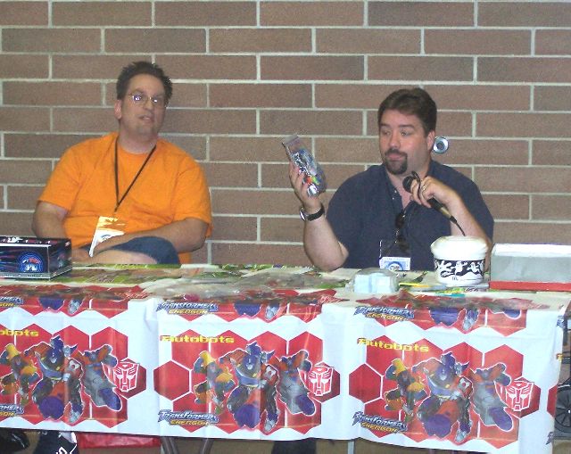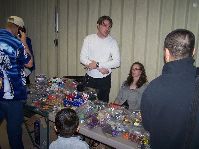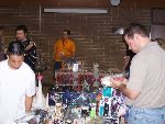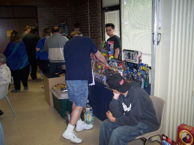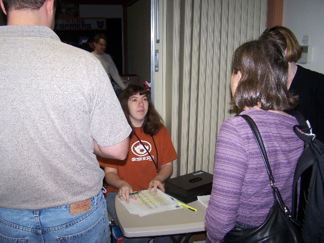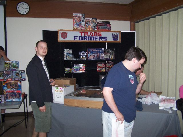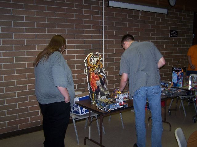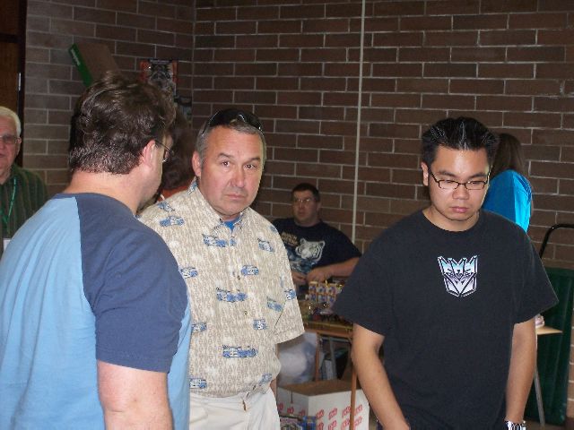 Shortly before the last few rounds of the BW:TM tourney, we did the Survey raffle. A large container held all the surveys, and Richard's lovely wife Zeatha pulled a random sheet from the box for the winner of another CybCon Jazz. You'd think we had a ton of them this year, but we didn't. Just 15 total to give away, though we did hold one aside for auction. After that was taken care of, we finished off the BW:TM tourney, and dove immediately into the final raffle and auctions. This was when handed out most of the Jazz toys, the Energon toys, and a slew of things I don't even remember. We literally had more and more things as the day wore on because generous dealers kept donating things! We also had several no-shows, and raffled off the extra SWAG bags, which included their own tickets for the winners to make use of. As it was getting toward the end of the day, we tried hard to move quickly, which can be difficult when half the tickets you pull are unclaimed. For the Jazz toys, I literally just kept pulling tickets and calling out numbers until all had been rightfully claimed. :) Finally, with all the raffle items gone, we dove into the Auctions. Up for auction this year were some interesting, and some desireable items. Of course, we had a single, the last, CybCon Jazz toy. After some very heated bidding, Kevin Hurd won it for $115. Always willing to help keep CybCon going, Kevin is a true fan if there is such a thing. We also auctioned the set of Jazz molds (minus key parts so you can't actually make any more) that were used to create the toy. There wasn't as much interest in these, but they did bring in I think about $20. We had a set of G2 Gobot recolors, including Optimus Prime, Soundwave, Ironhide, Frenzy and the rest that went for $61 to a bidder who desperately wanted at least one or two from the lot. We also had a bag of decoys, to which a dealer donated not only a decoy style Soundwave eraser, but also a genuine Ravage decoy! The set was drooled over a little more after that, but had only a couple interested bidders, and went for about $20 as well (I don't remember exact figures on most of these, so estimate some of them). And finally, we had decided, apparently mistakenly, to put a very good condition Wheelie minibot up for auction rather than raffle. I expected there to be a LITTLE more interest, but hey, everyone can make a mistake. I think he finally went for like $4, after having the starting bid lowered to $1. Poor guy. The toy really doesn't deserve the character's show deptiction. :\ By the time the auction was complete, we were looking around the corner of 4pm, nearing the end of the show. Attendance thinned out considerably, and a couple dealers even started packing up early. By the time 5pm rolled up on us, dealers were all started packing up and getting ready to go. Dealers finished up, we cleaned up, and helped Joebot haul his boxes and display stuff out of the building for him to pack into his van. He's always got so much stuff, the hour we provide isn't quite enough. :) Overall, I honestly don't think it could have gone much better. It was a great day, and I had a lot of fun, even though I didn't have much time to shop or buy. I did fill one small hole in my collection when I picked up a HOC Megatron with Mace. The next day I gave in and bought Cybertron Starscream at Wal*Mart. Man that thing is big! Anyway... We've got some survey's to look through, and plans to make for CybCon 2006. See you next year! -Greg |