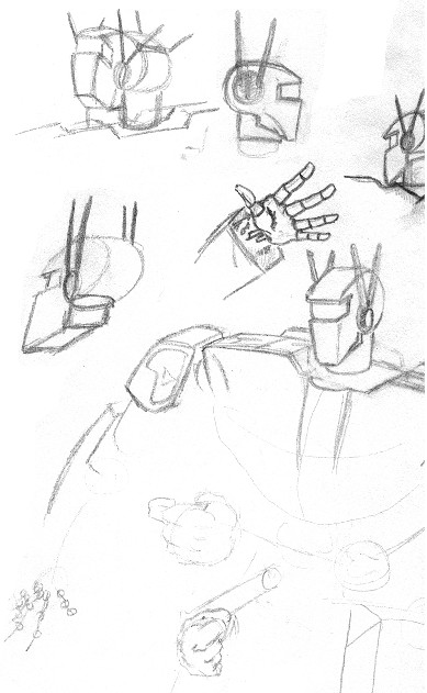 - Optimus-Dazed - This is a sketch, in the very beginnings, but none the less a work. Optimus is depicted here as being in a daze, a state of immense thought. (91k, 12-1-00)