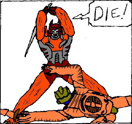 - Lavatron - Inspired by the Animorphs Visser 3 toy. I like how I got the insane look on his face, which fits the character well (23k, 6-26-00)