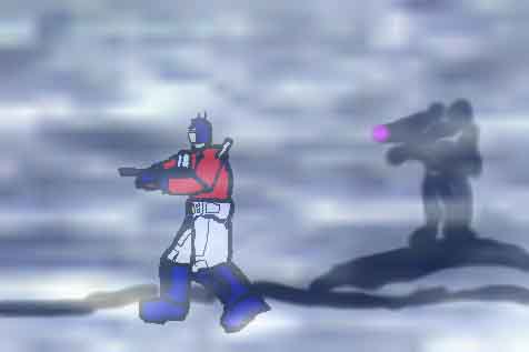 - "Sneak attack" - Optimus Prime and Megatron fighting in a foggy area. in case you cant tell, Megatron is the shadowy figure on the right. Lookout Prime!!! :P (13k, 9-26-00)