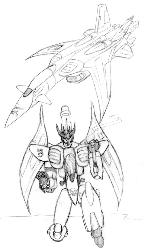 - a character that I created on Transformers 2005 Mush. His name is Bandit. He is a Decepticon seeker with aspirations of leadership. This is a concept sketch in pencil. (60k, 1-24-01)