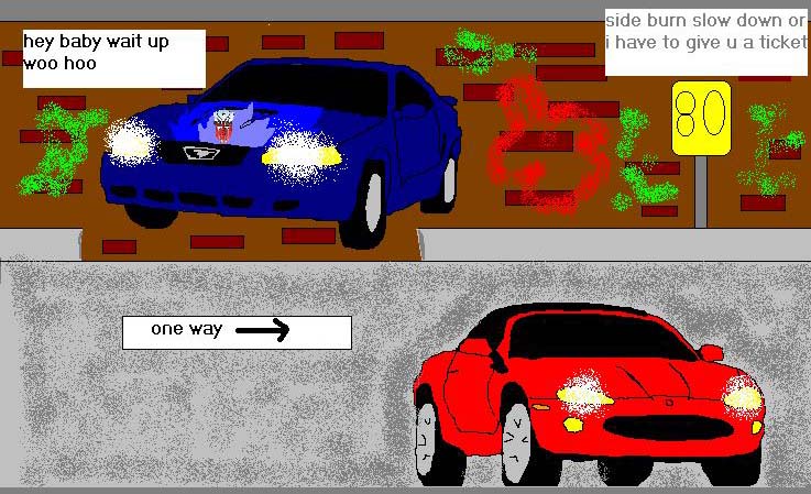 - Speedway - when you watch TF RID you would find side burn chasing his dream car (cute red sports car) and when the chase is on prowl is there. WOO HOO (104k, 3-17-02)