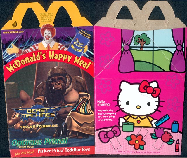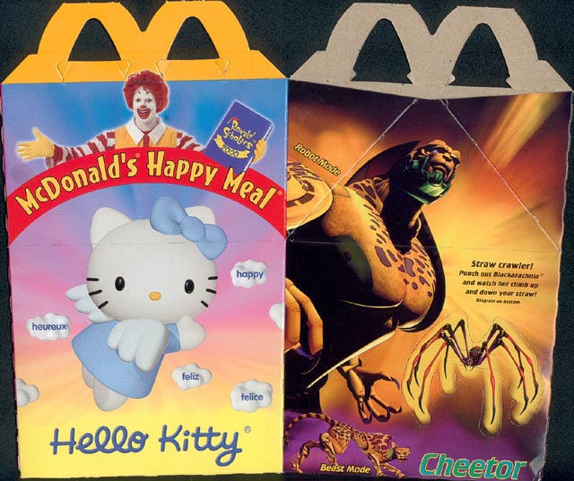 As you can see, this promotion also included the "Hello Kitty" toys (for girls). The toys for this promotion can be found in my Toys section, and most are pretty cool... for McDonald's toys. hehe. This promotion took place in August of 2000.