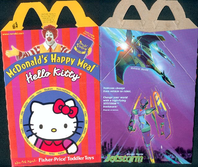 • Box 2: Back and Left Side (107k) - Jetstorm in vehicle and robot modes, the robot mode pic is a punch-out bookmark, and Hello Kitty on the left.