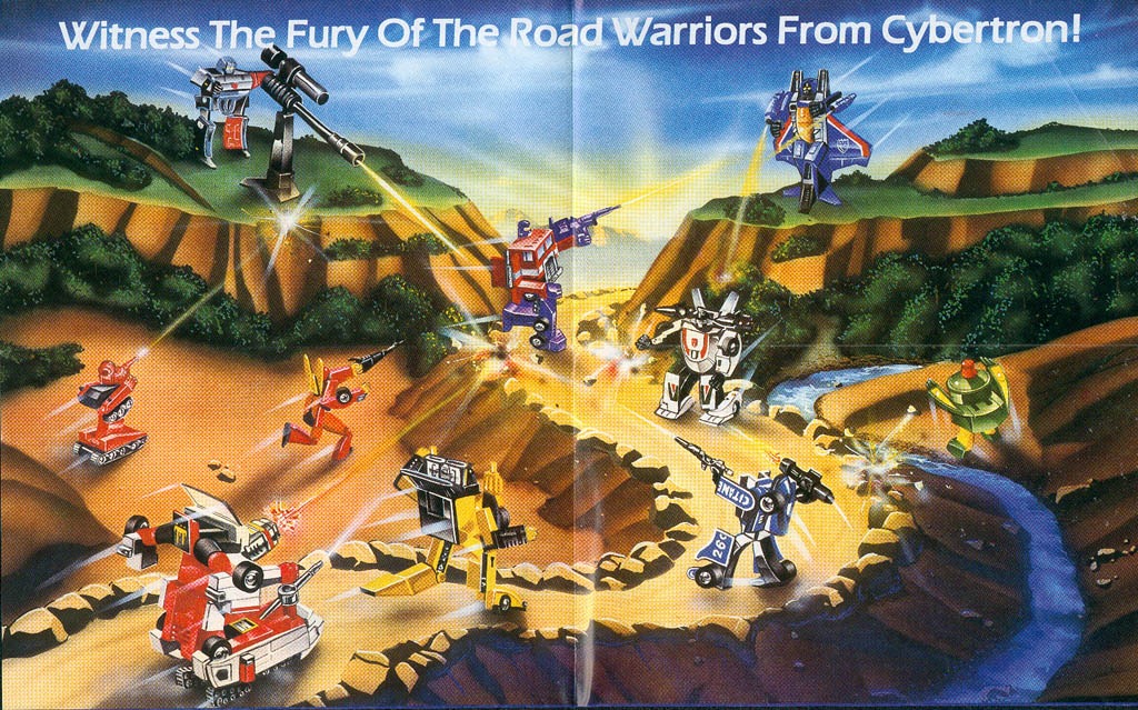• Page One (151k) - Front and back cover art, which is one of the classic Transformers battle scenes, I think from one of the earliest box art, if not the first.