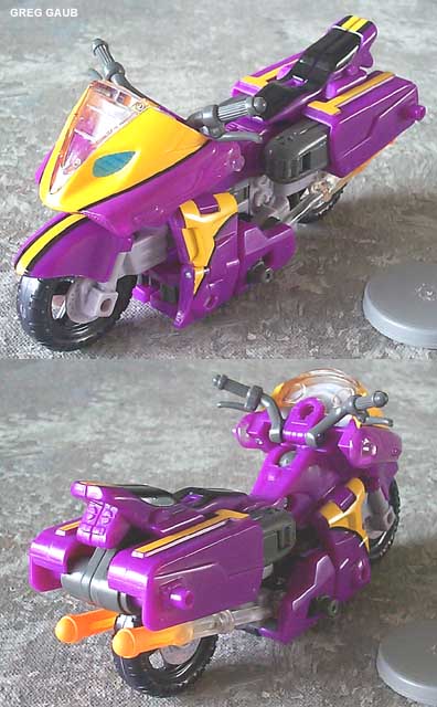| Added by: FAB1 on March 27, 2003 Rated it: Comments: A solid TEN! Why? First: Even my darling Transformers-hating best gal thinks he´s cool - because of the color scheme. 2nd: In Robot Mode he looks a little like the old DIACLONE MICRORIDER model kit by REVELL. 3rd: The combined Crossways/Rook/Robot rides that thing most naturally - like a young Marlon Brando 4th: He´s the FIRST TF motorcycle that comes with a rider. 5th: He combines LOTS of gimmicks old and new: The rocket launcher stems from the G2 Minijets, his Minicons COMBINE(!!), they are his HEADMASTERS and those sliding panels revealing either Decep´or ´bot insignia are a stroke of genius. 6th: If pushed forward straight and fast enough he rolls for an amazing distance 7th: His Minicons feature AMAZING articulation so their legs can be bent behind the robot´s head in either ´bot or ´con mode. 8th: Transformation is fairly easy and still complex enough so you don´t see too many robot parts when he´s in vehicle mode. 9th: I´m still a sucker for clear plastic parts - and that way the exhaust pipes/missiles look great. 10th: You can even place BOTH minicons behind each other on sideways´ vehicle mode. THAT`S WHY! The robot´s limited posability can be ignored totally - I want a transforming toy - not a POSEUR! ;-) |