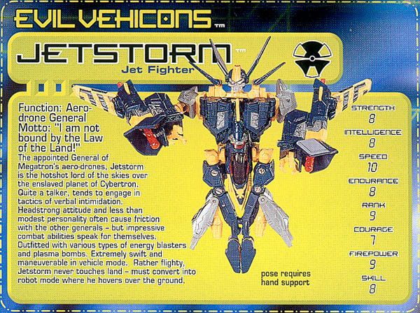 - This is one killer jet! Again, somewhat different from his show-self, but again, that's ok. :) This is the kind of stuff we've been waiting for since Beast Wars started. One cool thing is that his wing tips can be turned forward or backward, as you can see in the vehicle mode photo insert.