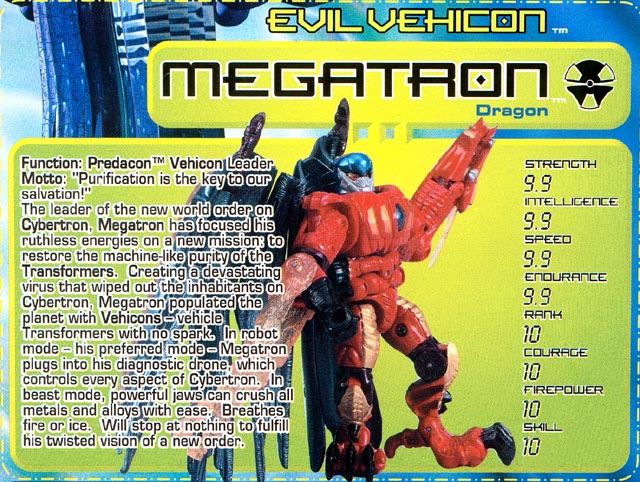 - Too small for a Mega. Should have been a Deluxe. Ho-hum beast and robot modes. Inaccurate cloak mode. If he weren't Megatron, I'd probably not recommend him.
