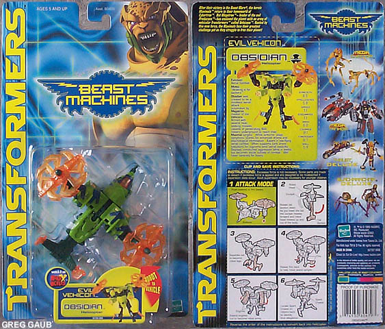 - Although the card says it's a helicopter, it's not. It's a VTOL (Vertical Take Off and Landing). This is because there are two propellers, one on each "wing," designed to rotate/tilt forward for flight. You can see how they can rotate in the Alt Mode picture above. I'm guessing they decided to call it a helicopter to prevent confusion among the kiddies. Anyway, it's a great VTOL toy. With the propellers removed, it looks very much like something out of Terminator or Aliens. Again, COOL vehicle mode!