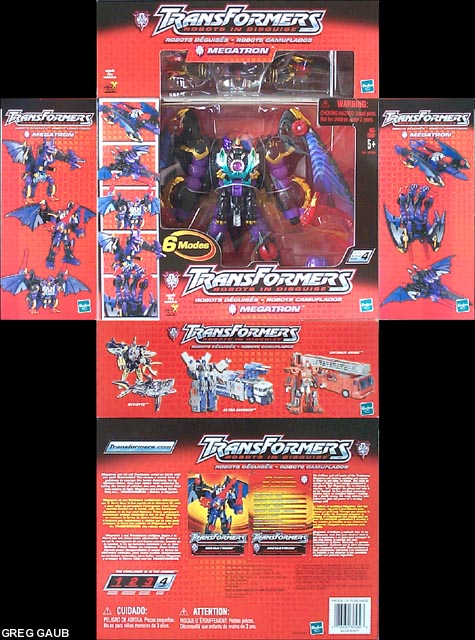 | Added by: Jesse on March 04, 2002 Rated it: Comments: The evil Magatron becomes Galvatron. Galvatron has 4 additional modes besides Megatron's 6. Galvatron's modes are: ROBOT, GARGOYLE, TWO-HEADED DRAGON, JET, TRANSPORT, CLAW, GRIFFIN, FLYING DRAGON, ELEPHANT, and BOAT. You can view the front of Galvatron's instructions at http://www.transformers.com/instructions/galvatron80656_front.pdf and the back at http://www.transformers.com/instructions/galvatron80656_back.pdf. You're welcome! If you want more info on TRANSFORMERS: Robots in Disguise visit http://www.transformers.com/ |