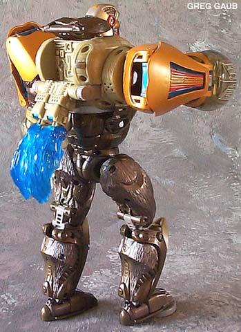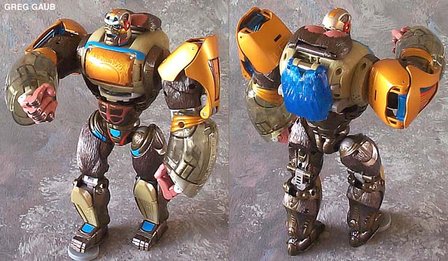 - Dark brown, gold, bronze, and orange with some pink and blue accents. Most unfortunate is their choice of coloring his monkey butt pink. Excuse me, but I don't think Silverback Gorillas have pink butts, especially not ones that look like a babboon's butt. Yes, it bothers me. Otherwise, I love his color scheme. It's easily one of the best Beast Machines color schemes. Oh yes, I forgot to mention that. THIS IS A BEAST MACHINES TOY!!! I know, they put it in RiD packaging because this toy was released long after the Beast Machines toy line and cartoon was over, but still... this bothers me as well. Such is life, let's move on...