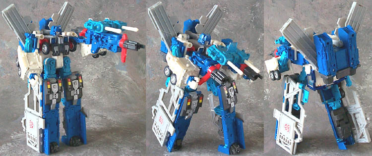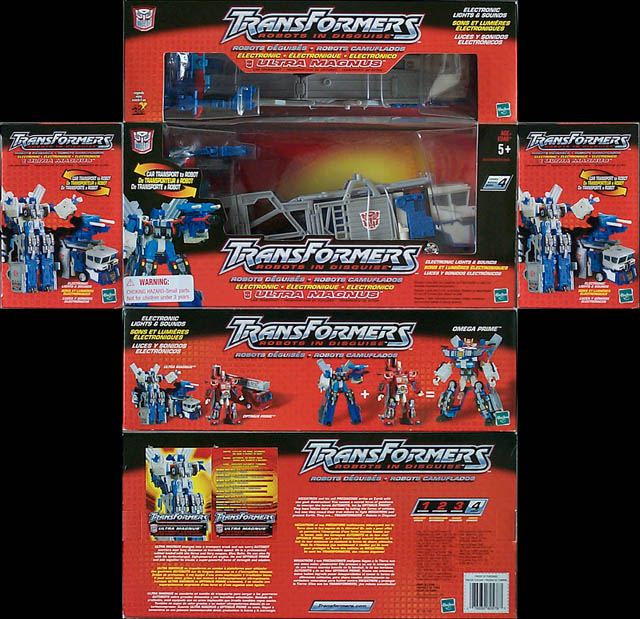 | Added by: willie on October 13, 2001 Rated it: Comments: this new version of ultra magnis is cool. i like how they kept the colors of blue ans white like the original. transforming him from truck to robot was a little difficulst at first but after once or twice you can get the hang of it. |