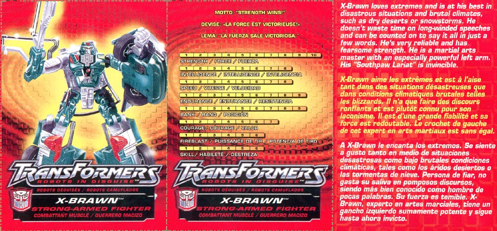| Added by: prowl on December 09, 2002 Rated it: Comments: real cool,but my friends like scourge more than x-brawn,overall very cool and can do fine if you don't have his big brother.(cause i have only this x-brawn) |