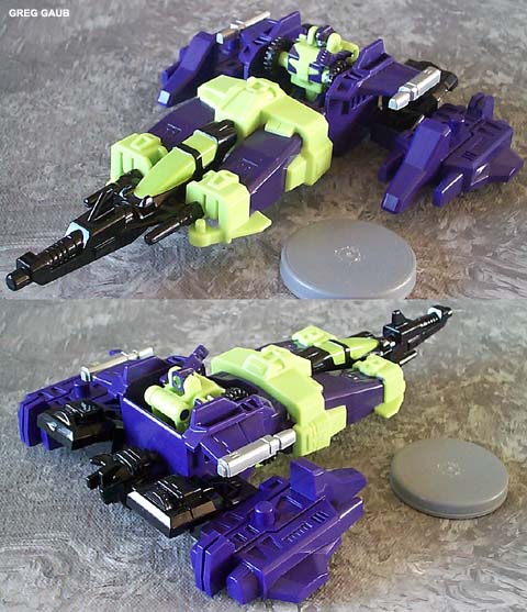 Greg's Review: The only reason to get any of the parts for this toy, unless you're a huge Micromaster fan, is to make the combined robot mode. Is it a miniature of the original Devastator? No. Is it a worthy use of the name? Yes. Other than the fact that Bonecrusher is Devastator's back-side, all the individual toys are put to good use and the overall look is really nice. There's not much articulation, but nor was there much in the original Devastator toy. Being able to put all the combiner pieces into a "ship" that one of the individual robots can sit in is a very nice touch, and adds a lot of playability to what would otherwise be a pile of plastic waiting for the combination to happen. I lucked out and got all 6 MISB for $30, and I'd recommend it to anyone at or below that price.