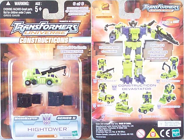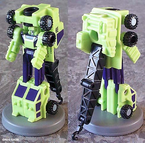 Greg's Review: Same review for all the Universe Devastator parts: These are Micromasters, plain and simple. The vehicle modes look pretty good. The transformations are really simple. The Robot modes are plain with limited articulation, and the green is a great neon Devastator green, as it should be. These toys are recolors of the Japanese Micromaster Sixbuilder and are well chosen and well done.