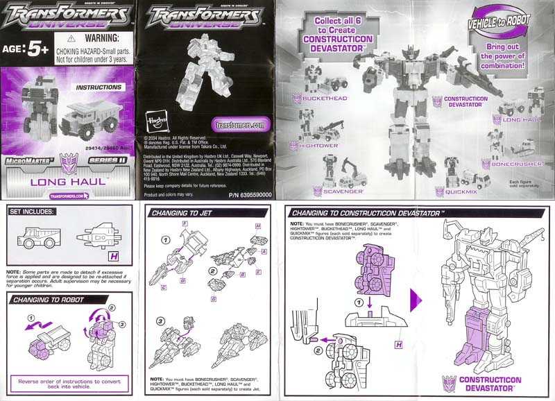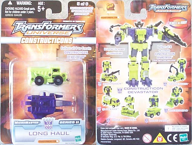 Greg's Review: Same review for all the Universe Devastator parts: These are Micromasters, plain and simple. The vehicle modes look pretty good. The transformations are really simple. The Robot modes are plain with limited articulation, and the green is a great neon Devastator green, as it should be. These toys are recolors of the Japanese Micromaster Sixbuilder and are well chosen and well done.